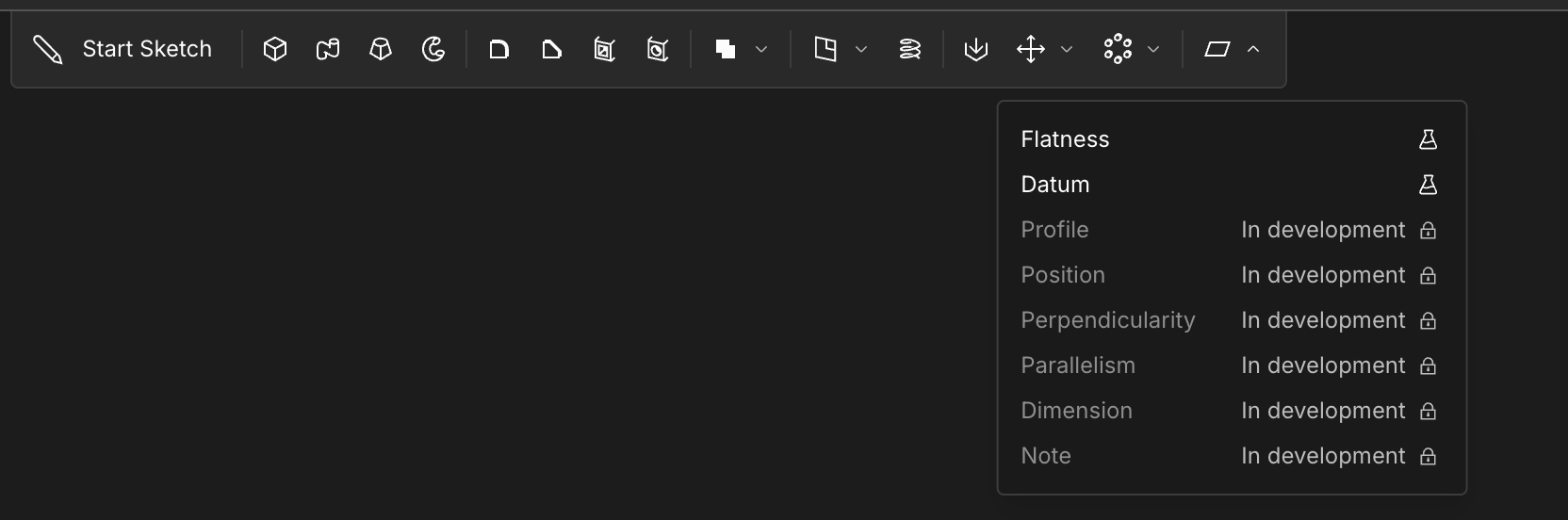 We're adding more GD&T features to our point-and-click UI! This month we added a button for the "Datum" annotation. It's a drop-down in our general-purpose GD&T annotation menu, seen here:
